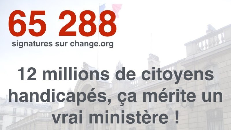 Petition update"Douze millions de citoyens #Handicapés, ça mérite un vrai Ministère"66 000 SIGNATURES ! SVP ENVOYEZ UN TWEET MAINTENANT !
