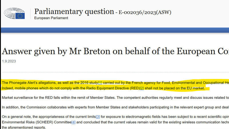 Cher(e) soutien, Grâce à vous nous venons d'obtenir une formidable reconnaissance de la Commission Européenne. Thierry Breton a confirmé que les téléphones portables dangereux n'ont pas leur place dans le marché européen. Il y a encore du chemin pour obtenir une réelle protection de la santé des millions d'utilisateurs de téléphones portables, tablettes, montres et autres objets connectés, mais nous avançons ! Merci de relayer largement notre communiqué, l'équipe Alerte Phonegate (Faire un don)