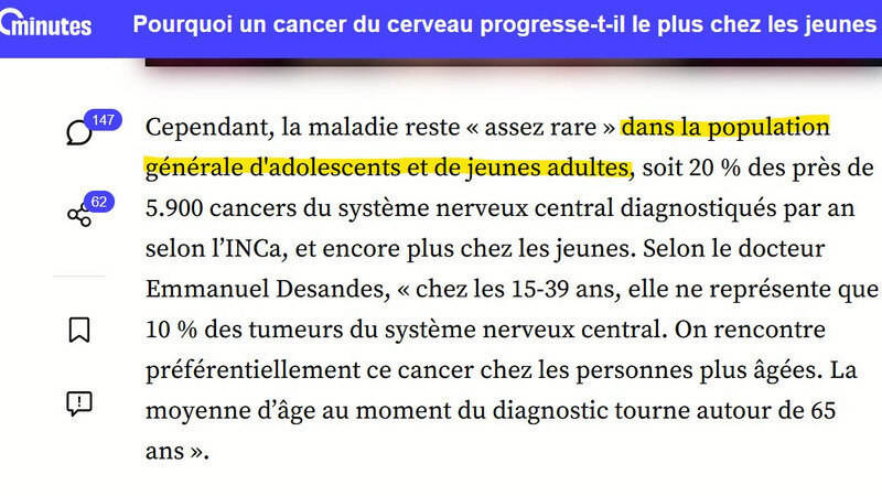 ➡️ Exigeons une information fiable sur l'augmentation des cancers du cerveau les plus graves chez les jeunes (230% d'augmentation en 20 ans)
