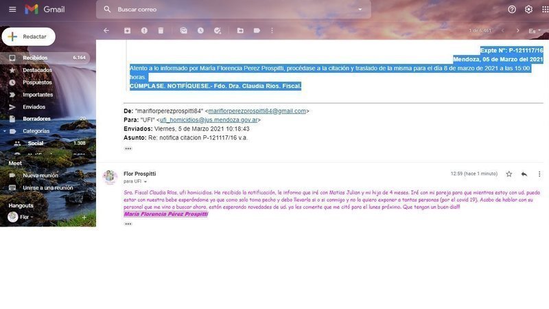 Como ya les contamos, no puedo ir hoy a la fiscalía a asistir a la citación, situación que le comente por mail a la fiscal a través del mail de la ufi homicidios. Bueno mi mail lo envié pasadas las 10 de la mañana. Pasadas las 12 recibí la respuesta que me citaban para el 8/3/21 a las 15 hs y me traslada personal de la fiscal. Estoy respondiéndoles el mail cuando llego a la puerta de mi casa un auto blanco, dos muchachos preguntaron a mi pareja (Mati, hijo de Viviana Luna) por mi, salí y venían a trasladarme a declarar (no sabían que me habían cambiado la citación para el lunes). Les explique, lo corroboraron y me dejaron el papelito que me notifica y el lunes vendrán a buscarme. Tanto en el mail como a quienes vinieron en persona les explique que debo ir con mi bebe de 4 meses (que solo toma pecho) y con su papa (Mati) para que mientras estoy en la citacion pueda estar en upa de el y no exponerla demasiado ya que sigue circulando el covid. Y ver con quien dejo a mis otros hijos para que no se queden solos. Así que la citación será el lunes. NECESITAMOS LLEGAR A LAS 500 FIRMAS, POR FAVOR SIGAN COMPARTIENDO. GRACIAS POR TODO!!!!