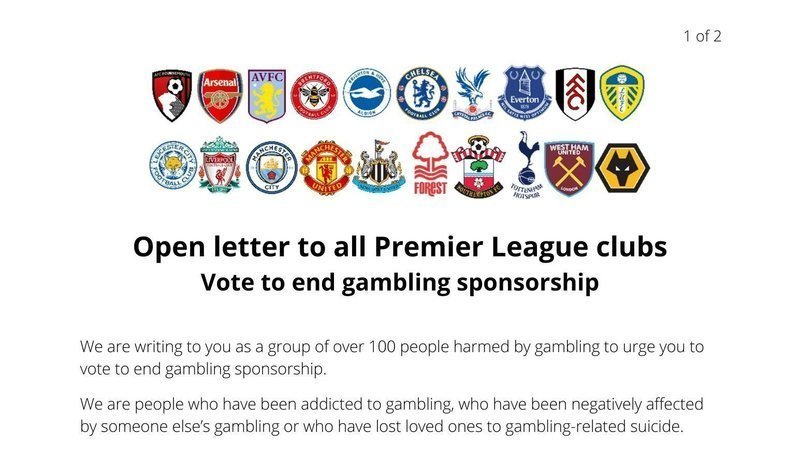 Today, 100+ people harmed by gambling have written to every Premier League club urging them to do so.
