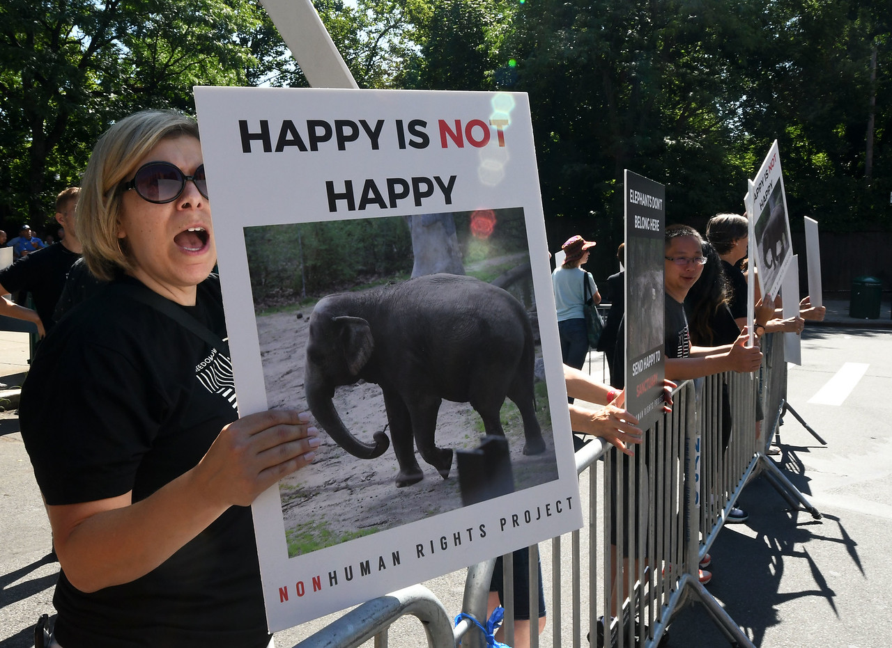View the full articleProtestors gathered outside Bronx Zoo on Saturday to demand the release of Happy, a 48-year old Asian elephant, who was brought to the U.S. IN 1977. Backed by New York Rep. Alexandria Ocasio-Cortez and New York City Council Speaker Corey Johnson, the protest came two days before World Elephant Day on Monday.