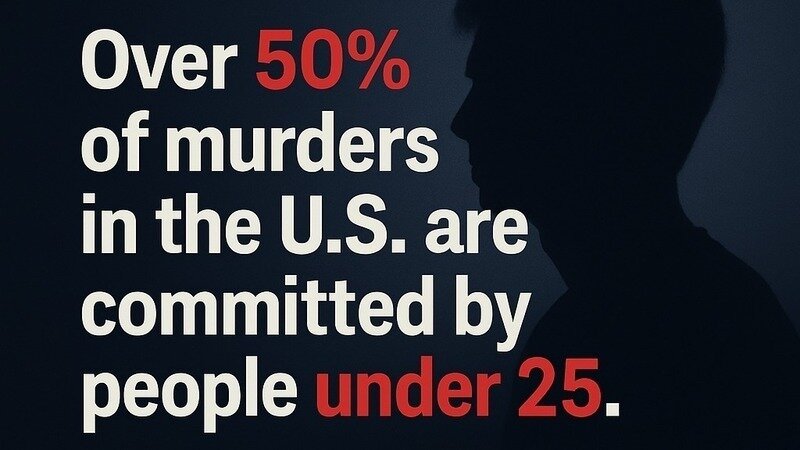 The statistic — "Over 50% of murders in the U.S. are committed by individuals under 25" — is grounded in publicly available data from the FBI's Uniform Crime Reporting (UCR) Program and the CDC's National Violent Death Reporting System (NVDRS).