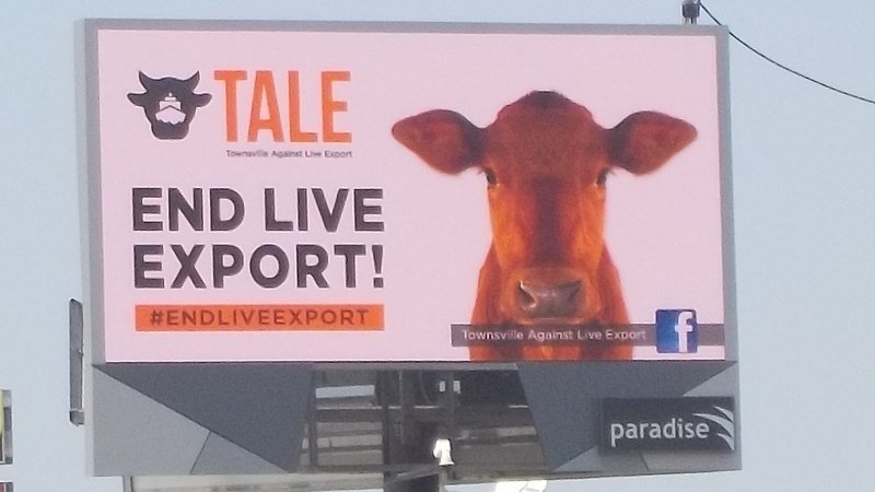 People driving along Woolcock Street, Townsville recently have been seeing this image. Part of an eight week campaign funded by donations from people who want to see an end to this cruel trade. Please keep sharing the petition so animals will not continue to suffer. 37 live export ships have now left Townsville, so far this year