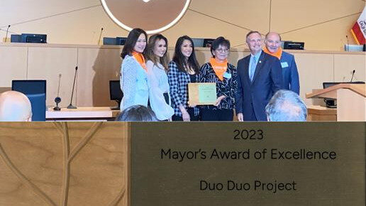 “The 2023 Mayor’s Award of Excellence for Group Effort goes to Duo Duo Project. Duo Duo Project is a Sunnyvale non-profit focused on ending the brutal dog and cat meat trade in Asia, and ensuring that dogs and cats are seen as family, rather than food, around the world." - Sunnyvale City, California Mayor: Larry Klein