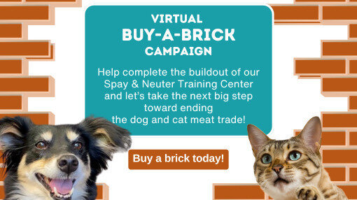 When you buy a virtual brick for $25, your gift will be doubled while funds last! With your support, our center will reduce the number of strays who fall victim to the dog and cat meat trade.