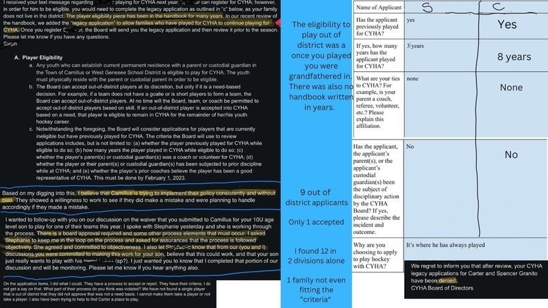 I was told only 9 out of district kids applied, and only one was taken. I knew right away that was a lie. There is 12+ out of district players, some not fitting the criteria. Apparently what I should have said
