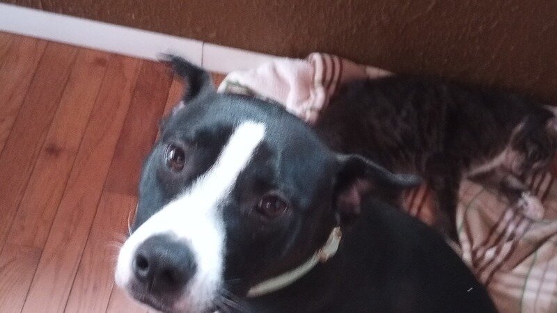 (Picture of one of our rescues, Scout, who was found dumped by the road, very skinny, with a neck wound.)