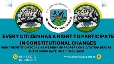 Let's stand together to guarantee that every South African has a say in the constitutional changes. Sign this petition to demand better engagement and representation for all citizens in this essential democratic process and for the extension of the closing date of 31st May 2025
