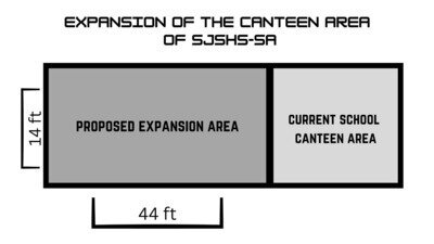 The project encompasses the expansion of the school canteen to better accommodate the needs of the students, faculty, and staff. The expansion will be connected to the left side of the canteen, it will have a roof and metal poles as foundation of the structure. The area of the structure is 44 ft x 14 ft. Chairs and tables will also be added to allow students to comfortably eat their food and to reduce the long waiting time and improve the efficiency and flow within the canteen area. The school canteen expansion can also foster a positive atmosphere for students to socialize with their schoolmates.