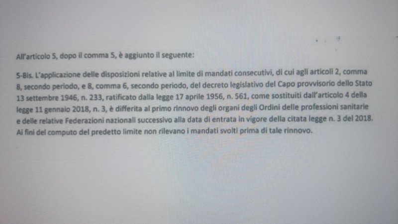 Purtroppo, sebbene con la legge 3/2018 di riordino degli ordini professionali sia stato stabilito un limite ai mandati consecutivi per il Presidente (solo 2), il che non consentirebbe a molti presidenti uscenti di ricandidarsi alla prossima tornata, sembra che all’ interno del decreto Milleproroghe si stia cercando di inserire un emendamento che rinvierebbe l’applicazione delle disposizioni previste per limitare gli attuali mandati pluriconsecutivi.