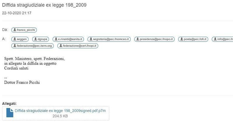 assieme al Dottor Giulio Cesare Leghissa, segretario generale SIOD (Sindacato Italiano Odontoiatria Democratica) abbiamo inviato una diffida al Ministero della Salute e alle Federazioni delle professioni sanitarie ( compresa FNOMCEO), preparatoria di una class action, per la mancata emanazione del nuovo regolamento elettorale, previsto dalla legge 3/2018 per dare più democrazia all'interno degli Ordini.