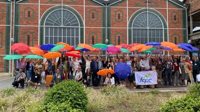Légende photo : Clôture du 77e #congrèsFCPE 2023 à Vierzon : les parents #FCPE ouvrent les parapluies en grand pour protéger l'école publique ! Mobilisés pour dire non aux suppressions de 1500 postes d'enseignants à la rentrée scolaire.