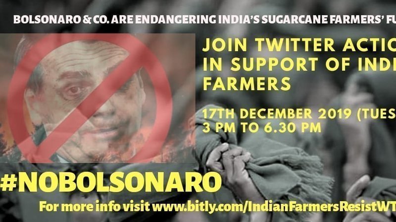 Join #NoBolsonaro #QuitWTO twitter action today (17/12/2019), 3pm to 6.30pm Search by hashtag #NoBolsonaro and retweet/reply/tag!