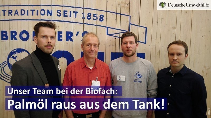 Liebe Unterstützer/innen! Wir haben uns diese Woche auf der Biofach-Messe getroffen, um die nächsten Schritte in unserem gemeinsamen Kampf gegen Palmöl im Tank zu besprechen. Bitte unterstützt uns weiter dabei, das Beimischungsverbot durchzusetzen und schreibt eine Protestmail.