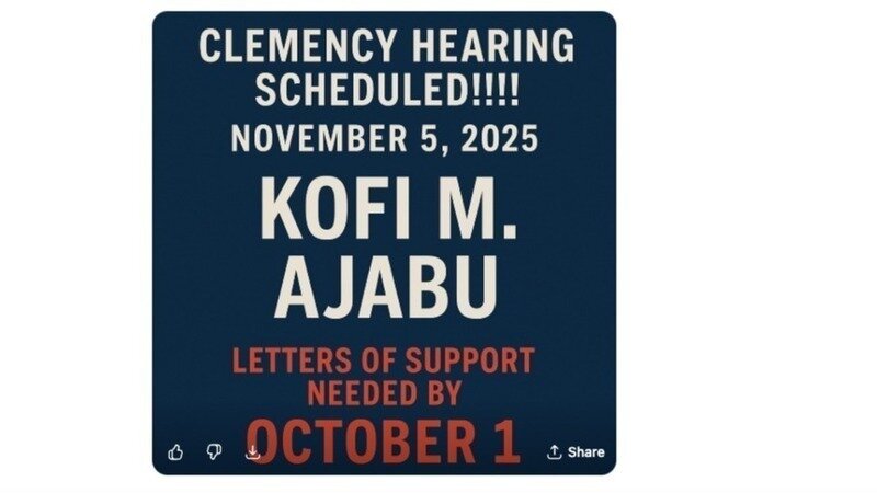 Friends—because of your support, we have huge news: Kofi M. Ajabu has officially been granted his clemency hearing!!!!