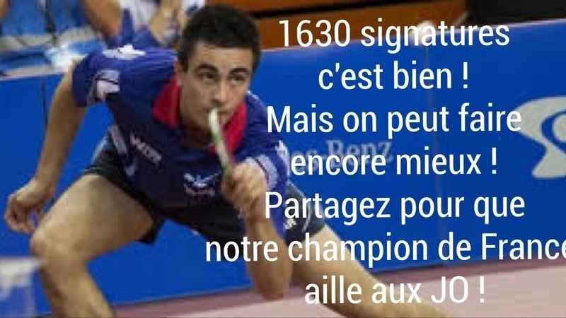Atteignons 2000 signatures pour soutenir Stephane OUAICHE avec pour objectif que la FFTT comprenne que ne pas sélectionner notre champion de France est sportivement parlant un vrai scandale et une vrai faute professionnelle quelqu'en soient les raisons invoquées que nous sommes bientôt 2000 à réclamer avec impatience !