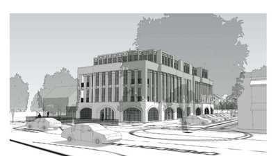 “Tippett described the building as having a brick skin, painted white, with dark, bronze colored metal windows, and carriage lanterns on the first floor. He indicated the fourth floor would be dark in color, similar to the window frames, to make it look more like a conservatory. A neighbor asked his estimation of the architectural style.