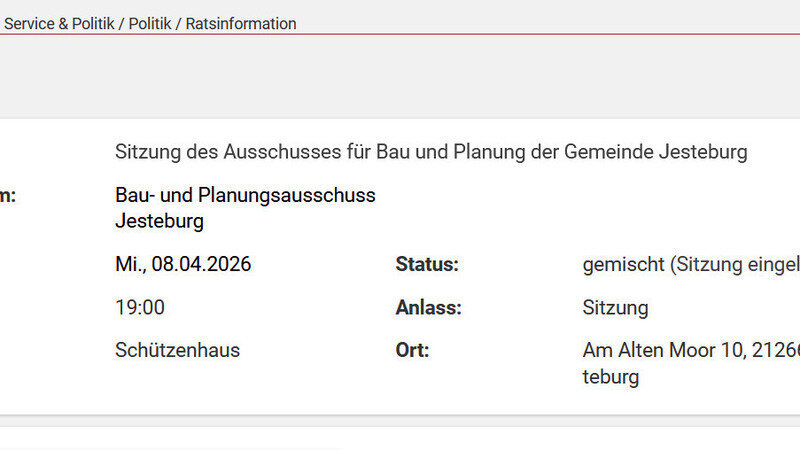 Am Mittwoch, den 8. April, stellt die Viva Terra Gruppe ihre Windkraftplanung für die Gemeinde Jesteburg vor. Die Sitzung ist öffentlich. Komm zur Sitzung und zeige, dass Du mit den Plänen nicht einverstanden bist und gegen den Bau von Windkraftanlagen in ökologisch wertvollen Gebieten bist!