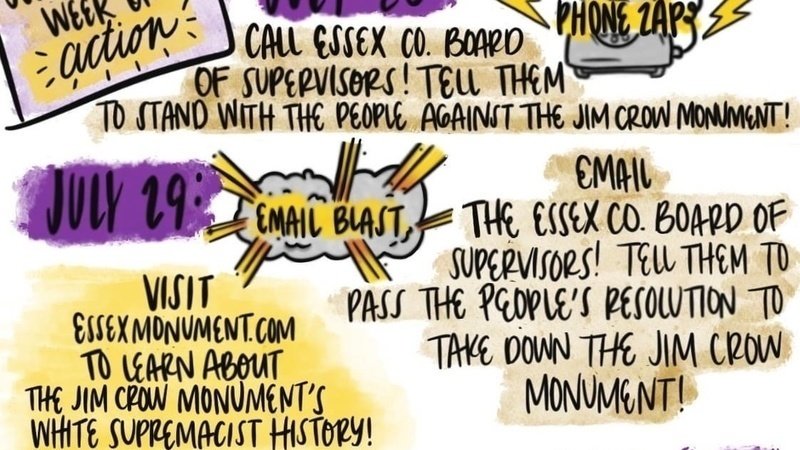 Follow @nnkyouthresilience on Facebook and Instagram, where we will post updates with phone numbers, email addresses, and messages that you can use to tell the Essex County Board of Supervisors to take down the Jim Crow monument.