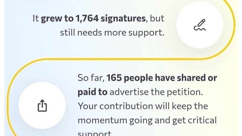 The problem is that we're not sharing enough. As the image shows the analytics figures, we can see that out of the more than 1700 signatories so far, only 165 have shared the petition with anybody else. That's only 1/10 people receiving this email.