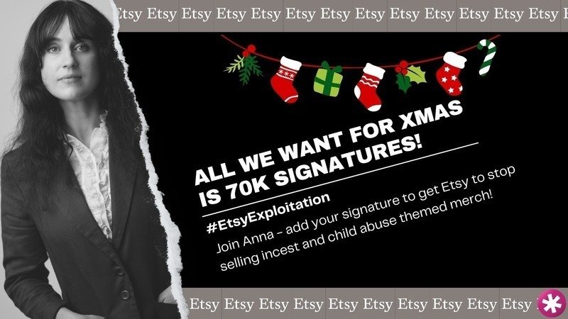 Petition updateEtsy: Stop selling incest and child abuse themed merch!All we want for Xmas is 70k signatures - you can help!