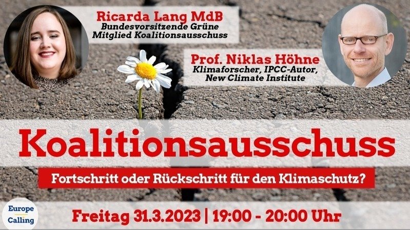 Der große Knoten für den Klimaschutz sollte zerschlagen werden im Koalitionsausschuss der Ampel-Koalition. Doch die Kritik an dem Ergebnis ist verheerend. Europe Calling e.V. schaut im Webinar genauer hin mit dem Klimaforscher Niklas Höhne und der Grünen Bundesvorsitzenden und Mitverhandlerin Ricarda Lang. Gleich hier anmelden: https://t1p.de/z8iui