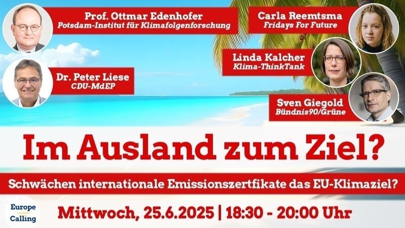 Was technisch klingt, könnte der Sargnagel für das EU-Klimaziel sein. CDU/CSU und SPD wollen, dass Europa nicht selbst CO2 einspart, sondern andere es für uns tun. Im Webinar von Europe Calling diskutiere ich mit spannenden Gästen, warum das eine richtig schlechte Idee ist. Gleich hier anmelden: https://t1p.de/ubgz9