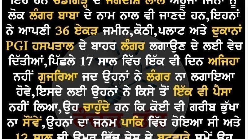 BHARAT RATAN for SHRI JAGDISH LAL AHUJA , for serving free food in PGI C’garh