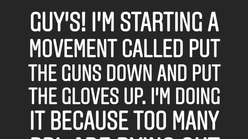Too many people are getting hurt out there with guns, knives, and other weapons. We need you to join the movement to stop this and to put your gloves up and put the guns DOWN!