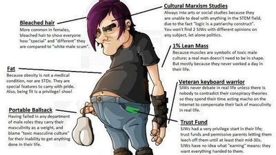 Social Justice Warriors are destroying our society. For those who don't know, Social Justice Warriors, often abbreviated to "SJW"s are the most double standard people, as they claim to be helping in making the world a better place, yet they often resort to violent or illegal acts such as doxing, property damage, assassination, or arson when advocating for political change. They claim to be against bigotry towards women, racial and religious minorities, yet they will NOT hesitate to attack white cisgender males, even women and minorities who are conservatives, proving that they treat these groups as tokens and advocate for them unless they challenge their worldview. Thanks to them always forcing people to believe five year olds should be LGBT+, they are responsible for why everyone is becoming less accepting of LGBT+ people, according to several studies. Some SJWs stoop as low to fake being to be black, POC, LGBT+, etc. just so they can feel special and receive positive attention. Not to mention, these people are definitely responsible for the suicide rate amongst men, as well as minority groups rising. So we must all fight together and take down all SJW-kind once and for all, so that our society can be happy and healthy again!