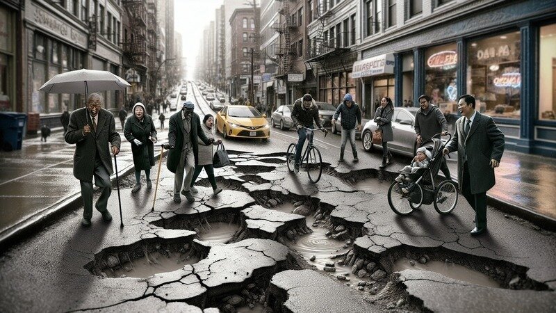 Purtroppo, quando piove, le strade perdono il manto asfaltato e le mattonelle che ricoprono i marciapiedi, trafficati da studenti, anziani e bambini, si sollevano con facilità, aumentando il rischio di cadute e incidenti di ogni genere.