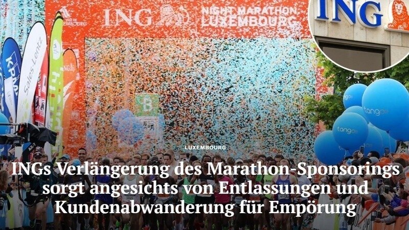 ING Luxemburg verlängert das Sponsoring des ING Night Marathon bis 2030. Währenddessen verlieren tausende Privatkunden ihre Konten, Filialen schließen und Mitarbeitende bangen um ihre Jobs.