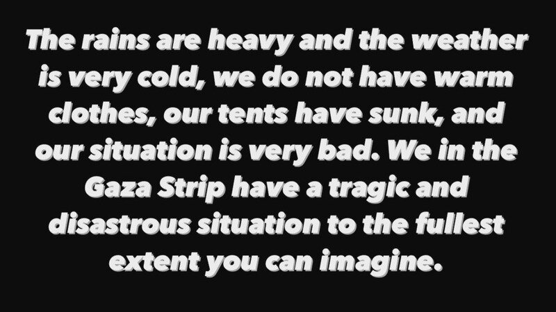 This is the situation for my husband and many Palestinians who have been forced to live in the open.