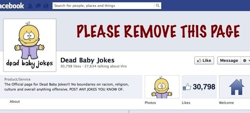 Do we really need sick people showing us that 'dead baby jokes' are fun? No, and this has been done before with people reporting it and facebook didnt respond. So herre we go with the petition. Im pretty sure we can get a few people sign it!
