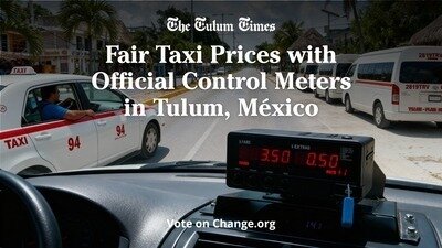 The goal of collecting these signatures is to encourage national, state, and municipal authorities to take concrete action and introduce mandatory price control meters in all taxis operating in Tulum, Quintana Roo, Mexico. This request aims to create a transparent and regulated fare system that benefits residents, workers, and visitors. With broad public support, the authorities will have a clear mandate to prioritize this measure and implement it as part of a more organized and reliable transportation structure for the region.
