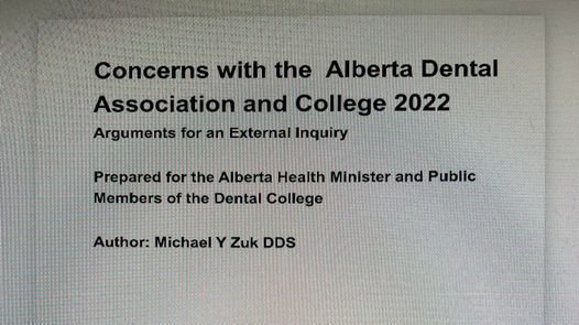 On May 10, 2022 a new book was published exclusively for the Alberta Health Minister and the public members of the dental authority with arguments for an outside audit. The authority lawyers are profiteering from their control of the complaint system and squeezing 99% of the cash out of the investigated dentists for their firms and the people on the inside. They often 'forget' the patient is entitled to a refund. Is it really that hard to remember the complainant? Can't a tooth dispute be handled within 12 months? This isn't rocket science. Charts have a few x-rays, a couple pages of notes and that's about it. No more excuses.