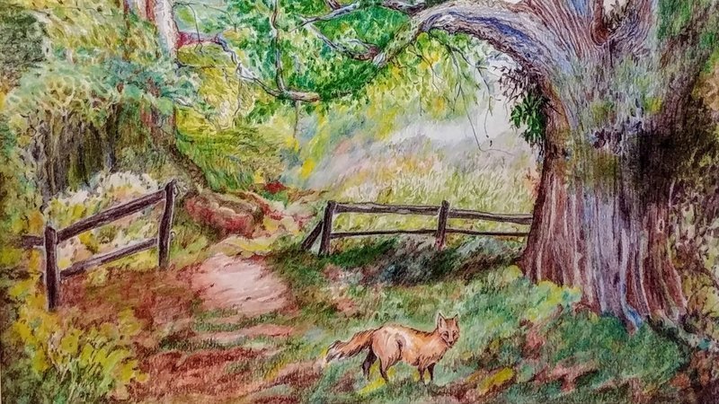 The painting shown here was inspired by Marquette's hikes on Markham Hill.