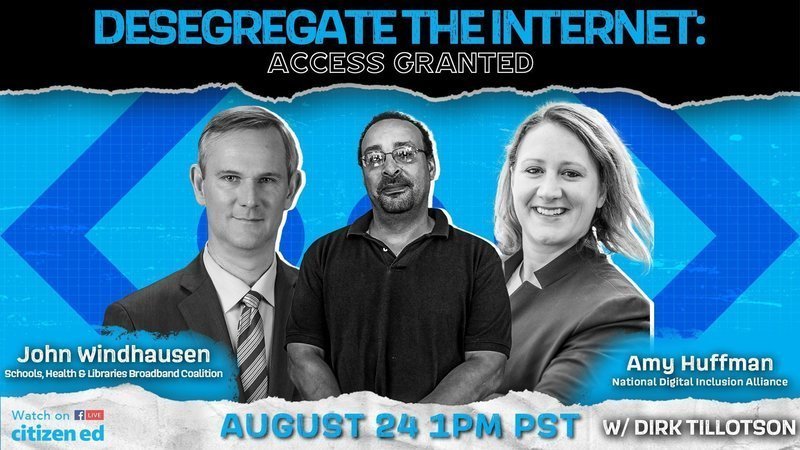 Its because of folks like you, and your advocacy, that Congress and the FCC are acting to give free broadband to low income families, but we need your continued pressure and help, please join us tomorrow as we break down the digital divide with national leaders, and build the movement to guarantee broadband to every family that needs it-- please join us in Desegregating the Internet