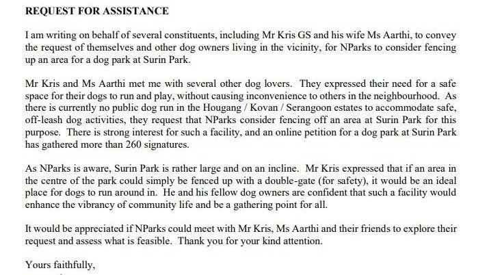 Aggiornamento sulla petizioneFencing & Land approval for Dog Park/Dog run at Surin Ave Park14 Nov 2022 - Request has been raised for fencing to NParks (to be explored)