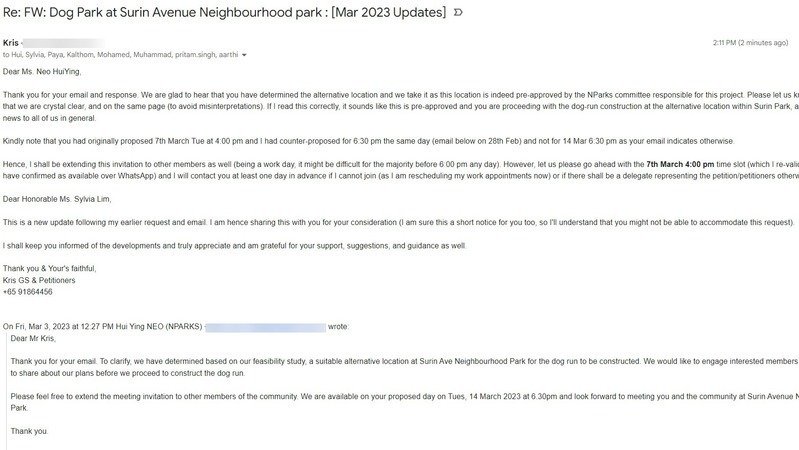 Please feel free to extend the meeting invitation to other members of the community. We are available on your proposed day on Tues, 14 March 2023 at 6.30pm and look forward to meeting you and the community at Surin Avenue Neighbourhood Park.