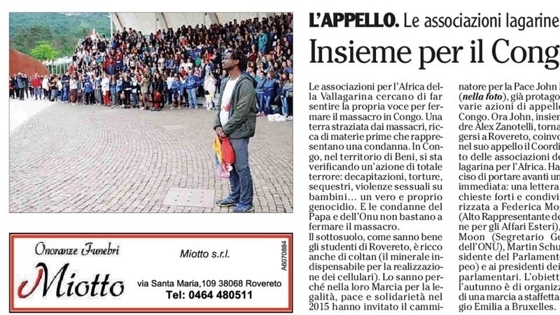Intanto ringraziamo "L'Adige" che oggi ha dedicato un articolo, dal titolo "Insieme per il Congo" a questo appello ed a questo dramma.