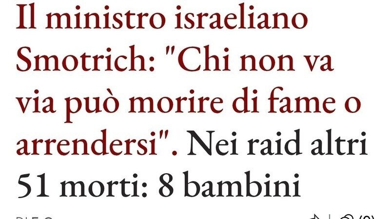questa gente inneggia direttamente e senza pudore alla morte di fame dei palestinesi. È antisemtismo dirlo? Io non so più cosa fare, queste persone non sono esseri umani, sono bestie. I coloni sono la feccia dell'umanità.