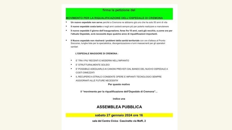 Il movimento per la riqualificazione dell'Ospedale di Cremona