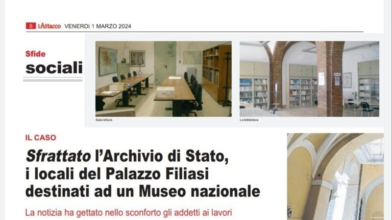Actualización de la peticiónFermiamo lo sfratto dell'Archivio di Stato di Foggia da Palazzo Filiasi!L'Attacco e Tg3 Puglia su Lettera e petizione Associazioni al Ministro Sangiuliano