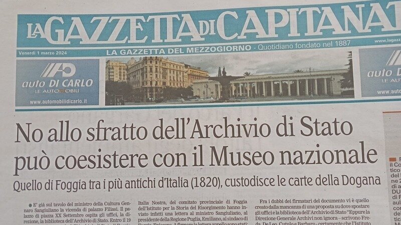 Ringraziamo i 1.140 firmatari della petizione contro lo sfratto dell'Archivio Stato di Foggia da Palazzo Filiasi.