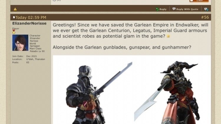 Petition update@FF_XIV_EN @FF_XIV_JP: Add Garlean Gunblade & Armour in Final Fantasy XIVQ&A in the FFXIV Forums