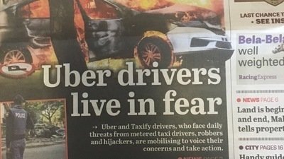 Meter Taxi violence and intimidation has escalated at an alarming rate, attacks becoming more frequent and brutal. A petrol bomb was thrown into an Uber car recently, the driver was in ICU, unable to talk, his car a burnt out shell. Another was beaten and his face slashed with a knife, he managed to get away while they were trying to force him into the boot but now needs surgery to insert a metal plate in his face. Probably 99% of attacks happen when a driver is alone so there are no witnesses. Business has dropped off which isn't fair as this is their aim. They don't want riders to be able to identify them or take action against them so PLEASE DON'T LET THEM ACHIEVE THEIR AIM, DON'T LET THEM SUCCEED IN SCARING YOU AWAY.