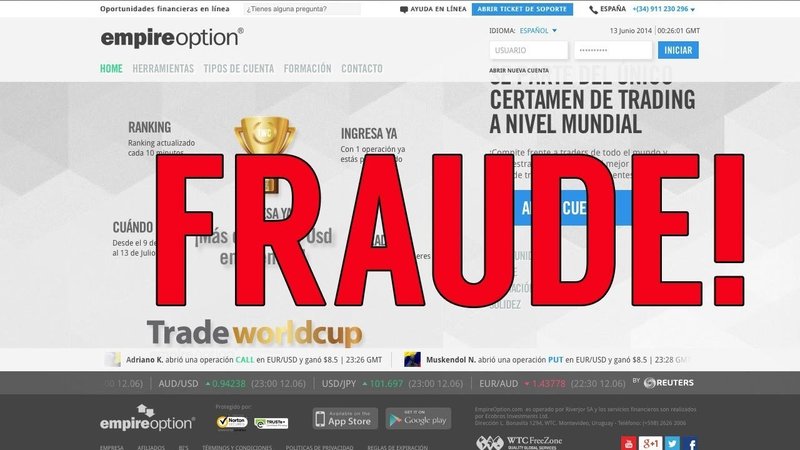 Cientos de usuarios a lo largo de los años se han visto afectados por las políticas abusivas a la hora de retirar su dinero desde EmpireOption.com, plataforma de trader en linea para opciones binarias y Forex.