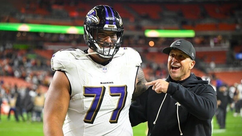 THE BALTIMORE RAVENS HAVE TURNED THE SHIP WINNING 4 STRAIGHT TO GET BACK TO .500 AT 5-5 AND IN THE PLAYOFF HUNT! THERE IS ONE WEAKNEES THAT REMAINS OBVIOUS: FIX THE O-LINE TO HELP CREATE HOLES FOR DERRICK HENRY TO GET LONG RUNS LIKE HE USUALLY DOES AND TO PROTECT LAMAR JACKSON FROM GETTING SACKED A BUNCH OF TIMES. THE RAVENS O-LINE HAS GIVEN UP 30 SACKS (24TH), A SACK% OF 10.3% (30TH), AND A QBP% OF 35.7% (22ND) AS OF WEEK 11. AFTER THEIR UGLY 23-16 WIN OVER THE BROWNS LAST SUNDAY (11/16/25), JOHN HARBAUGH PRAISED THE RAVENS' O-LINE AND SAID THAT THEY ARE PLAYING "PRETTY DARN GOOD" WHICH IS FALSE AND VERY INACCURATE. JOHN HARBAUGH NEEDS TO BENCH DANIEL FAALELE AND ANDREW VORHEES FOR EMERY JONES JR. AND ANOTHER ROOKIE GUARD SO THAT THEY CAN OPEN UP HOLES FOR DERRICK HENRY TO RUN LONGER AND TO PROTECT LAMAR JACKSON FROM GETTING SACKED BEFORE THE RAVENS TAKE ON 2-8 THE NEW YORK JETS THIS SUNDAY (11/23/25).